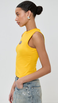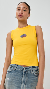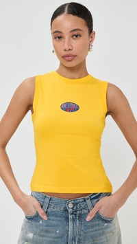 - Fabric: Lightweight jersey - Logo graphic at front - Crew neck - Shell: 90% cotton/10% elastane - Wash cold - Made in Portugal - Sleeveless Style #ACNDB32381 Size & Fit Model measurements: - Size XS: Drew (5'8") usually wears size XS-S - Size S: Haley (5'9.5") usually wears size S Measurements from size XS Length: 19.25in / 49.0cm, from shoulder