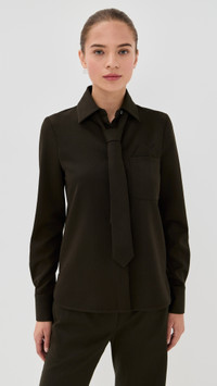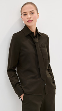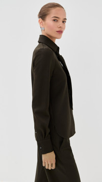 - Fabric: Lightweight, non-stretch twill - Removable necktie - Faux pocket square - Curved and split hem - Collared neck - Long sleeves with button cuffs - Button placket - Patch breast pocket - Shell: 100% wool - Dry clean - Made in Portugal Style #ACNDB32397 Size & Fit Model measurements: Size 32: Margaret (5'11") usually wears size 32 Measurements from size 32 Length: 25.25in / 64.0cm, from shoulder