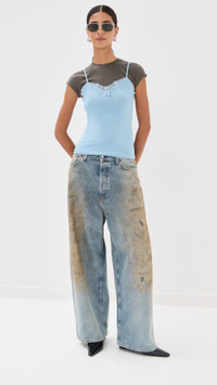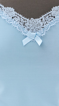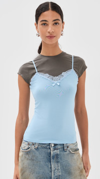 - Fabric: Lightweight jersey - Cami design - Lace trim - Crew neck - Short sleeves - Shell: 93% viscose/7% elastane - Trim: 90% cotton/10% elastane - Dry clean - Made in Portugal Style #ACNDB32339