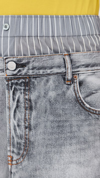 - Fabric: Lightweight, non-stretch crisp weave - Denim print - Boxer layer at waist with covered elastic waistband - On-seam side pockets - Shell: 100% cotton - Trim: 100% cotton - Wash cold - Imported, China Style #ACNDB32385 Size & Fit Intended to sit high on the waist. Finished with a wide straight leg and a puddle hem. Cotton fabric has an extra-smooth feel and offers no stretch. Shopbop’s expert stylist says: Runs large; designed for a loose fit. For a higher and closer fit, size down Model measurements: Size 32: Alexis (5'8") usually wears size 32-34 Measurements from size 32 Rise: 14.25in / 36cm Inseam: 29.25in / 74cm Leg opening: 21.25in / 54cm
