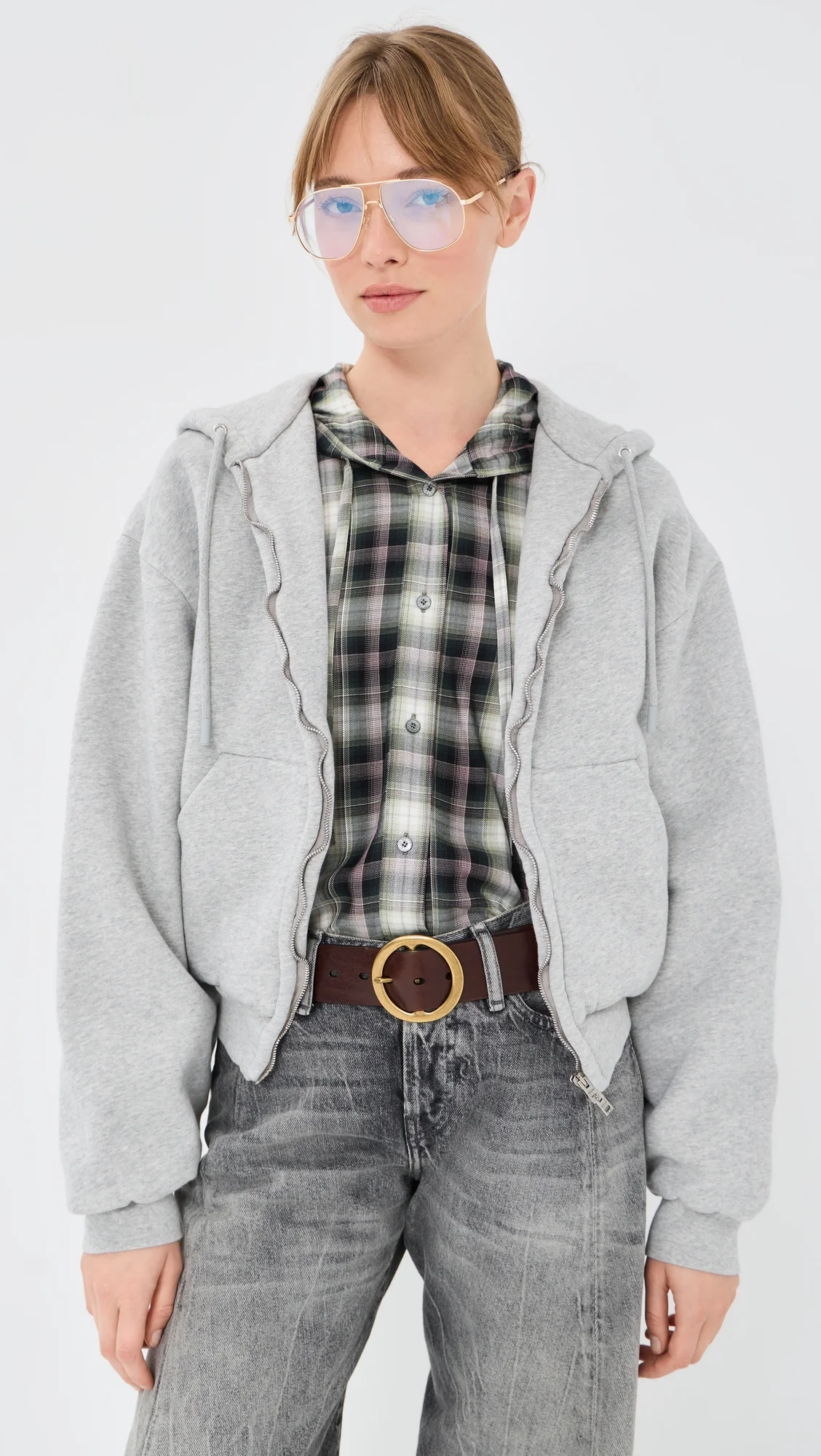 Hooded zip-up sweatshirt - Grey Melange