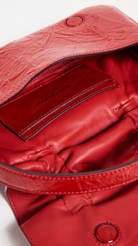 - Goatskin - Crinkled finish - Front knot details - Top handle - Fold-over flap with magnetic closure - Card slots at interior - Optional strap - Leather lining - Weight: 12oz / 0.34kg - Made in Italy Style #ACNDB32246 Size & Fit Length: 8.75in / 22cm Height: 4in / 10cm Depth: 2in / 5cm Strap drop: 19in / 48cm Handle drop: 3.5in / 9cm