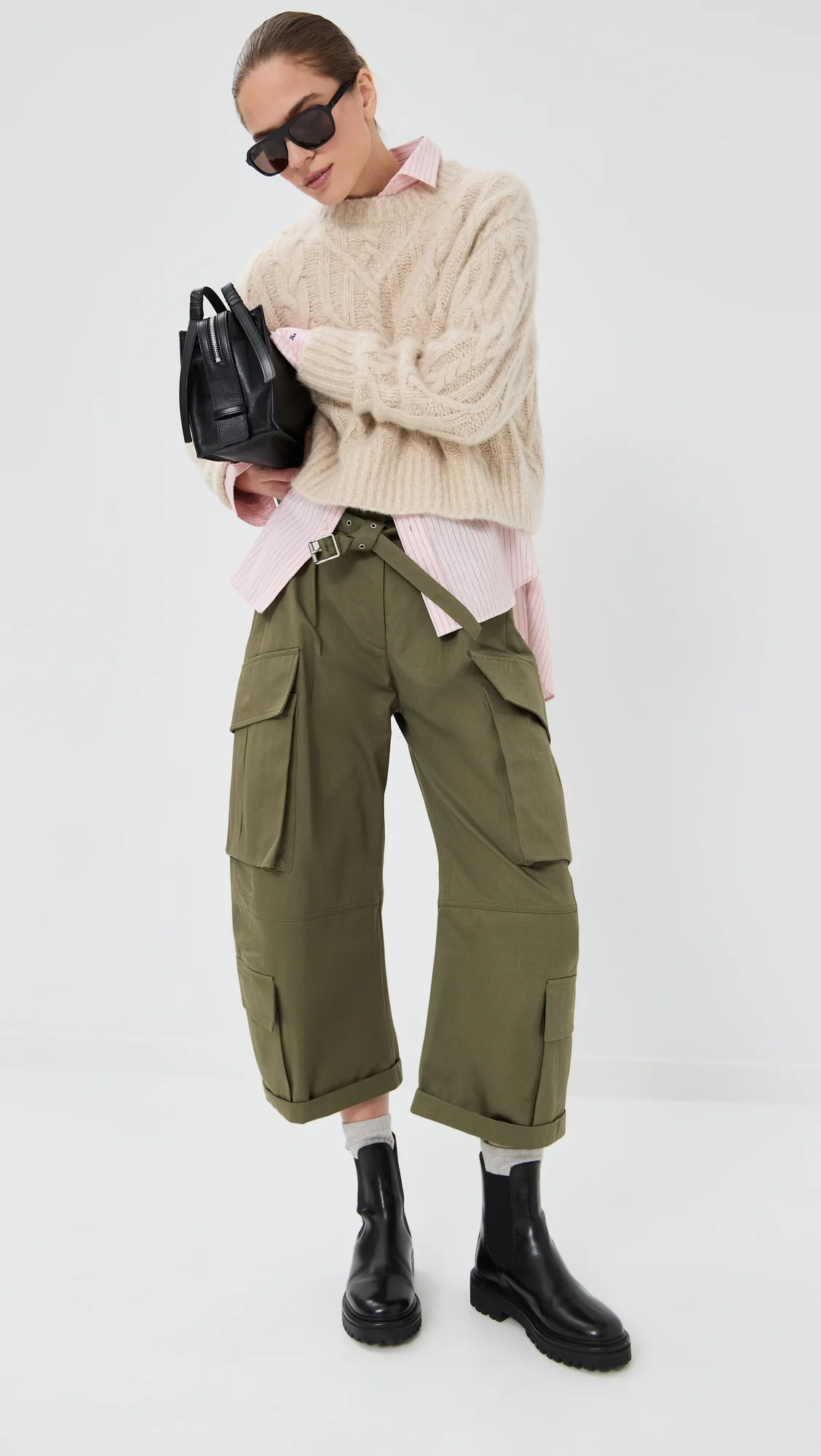 - Fabric: Mid-weight, non-stretch twill - Belted waist - Fixed cuffs - Button closure and zip fly - Cargo pockets - Shell: 100% cotton - Dry clean - Imported, Bulgaria Style #ACNDB32507 Size & Fit Model measurements: Size 34: Margaret (5'11") usually wears size 32 Measurements from size 32 Rise: 12.25in / 31cm Inseam: 20.75in / 53cm Leg opening: 21.25in / 54cm