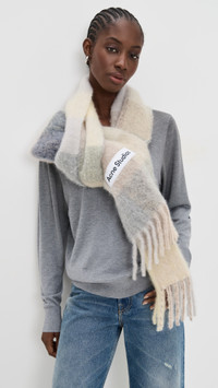 - Fabric: Lightweight brushed weave - Check pattern - Logo patch - Fringe trim - Shell: 33% alpaca/25% wool/22% nylon/20% mohair - Made in Italy Style #ACNDB32443 Size & Fit Width: 11in / 28cm Length: 98.5in / 250cm
