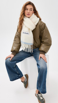 - Fabric: Lightweight brushed weave - Logo patch - Fringe trim - Shell: 33% alpaca/25% wool/22% nylon/20% mohair - Made in Italy Style #ACNDB32448 Size & Fit Width: 11in / 28cm Length: 98.5in / 250cm