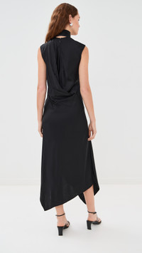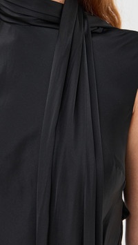 - Fabric: Mid-weight, low-stretch satin - Attached scarf detail with fringe trim - Asymmetric hem - Midi length - Mock neck - Sleeveless - Hook-and-eye and hidden zip at back - Shell: 97% viscose/3% elastane - Lined - Dry clean - Imported, China Style #ACNDB32416