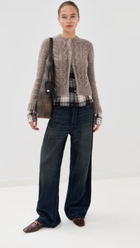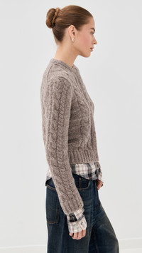 - Fabric: Mid-weight cable knit with stretch - Flannel trim with plaid pattern - Crew neck - Long sleeves - Button placket - Shell: 31% alpaca/31% yak hair/22% nylon/16% wool - Trim: 100% cotton - Hand wash - Imported, China Style #ACNDB32394