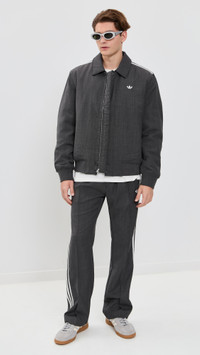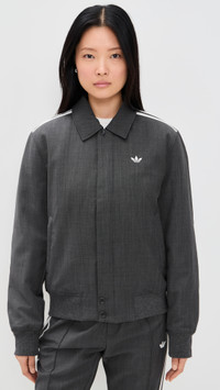 - Fabric: Mid-weight, non-stretch suiting - Contrast mesh shoulder stripes - Embroidered logo at breast - Ribbed elastic trim - Collared neckline - Long sleeves - Button flap and hidden zip placket - Hidden slant zip front pockets - Zip interior pocket - Shell: 50% polyester/50% wool - Trim: 71% polyester/26% cotton/3% elastane - Lined - Lining: 100% polyester - Fill: 100% polypropylene - Dry clean - Imported, China Style #AWBON30023 Size & Fit This style is unisex. For men’s sizing, take your usual size. For women’s sizing, take one size down from your usual size. Model measurements: - Size XS: Somin (5'10.5") usually wears size XS-S - Size M: Keanu (6'0") usually wears size M Measurements from size XS Length: 24.75in / 63cm Sleeve: 32.75in / 83cm Chest: 45in / 114cm