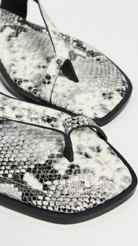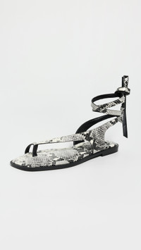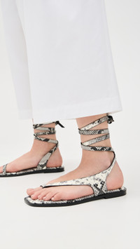 - Upper: Leather - Snake-embossed finish - Cut-out upper - Toe ring - Lining: Leather - Wraparound ankle strap - Open toe - Rubber sole - Imported, India - This item cannot be gift-boxed Style #AEMER30030