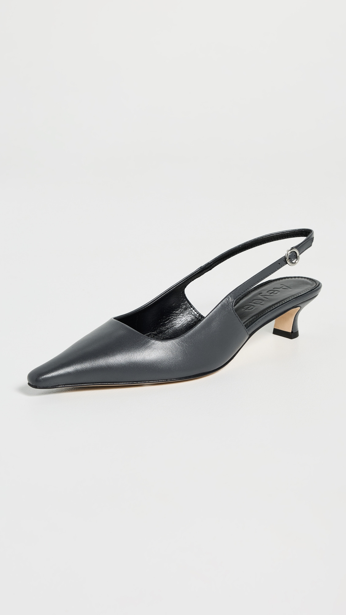 - Upper: Leather - Slingback strap with silver-tone buckle - Lining: Leather - Kitten heel - Slip on - Pointed toe - Leather sole with rubber heel cap - Made in Italy - This item cannot be gift-boxed Style #AEYDE30232