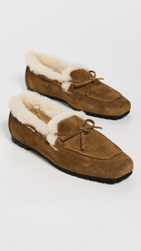 - Dyed lamb shearling, from Italy - Upper: Suede - Decorative bow at vamp - Moc toe seam - Lining: Shearling - Slip on - Square toe - Leather sole with rubber heel cap - Made in Italy - This item cannot be gift-boxed Style #AEYDE30248