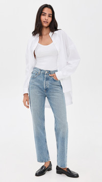 - Fabric: Mid-weight, non-stretch denim - Fading and whiskering - Distressed detailing - Button fly - 5-pocket styling - Shell: 100% cotton - Wash cold - Imported, Turkey Style #AGOLE31228 Size & Fit Model measurements: Size 25: Priyanka (5'9") usually wears size 24 Measurements from size 24 Rise: 11.75in / 30cm Inseam: 29.25in / 74cm Leg opening: 14.25in / 36cm