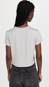 - Fabric: Lightweight heathered jersey - Crew neck and short sleeves - Super soft finish - Cropped profile - Shell: 95% modal/5% spandex - Hand wash - Made in the USA Style #AGOLE30668 Size & Fit Model measurements: Size S: Cher (5'11") Measurements from size S Length: 19.25in / 49.0cm, from shoulder