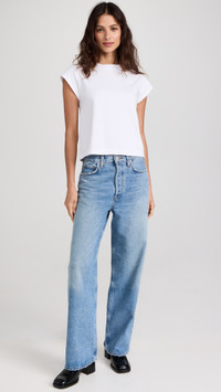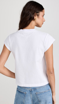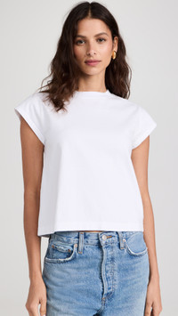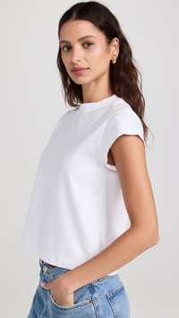 - Fabric: Mid-weight jersey - Crew neck - Shell: 100% cotton - Wash cold - Made in the USA of imported materials - Cap sleeves Style #AGOLE30769 Size & Fit Customers say: Runs small; please size up. Model measurements: Size XS: Bruna (5'10") usually wears size XS Measurements from size S Length: 20in / 51.0cm, from shoulder