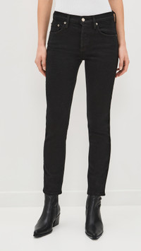 - Fabric: Mid-weight, low-stretch denim - Fading and whiskering - Distressed pockets - Button fly - 5-pocket styling - Shell: 99% cotton/1% elastane - Wash cold - Imported, Turkey Style #AGOLE31227 Size & Fit Model measurements: Size 25: Mia (5'9.5") usually wears size 24-25 Measurements from size 26 Rise: 9.5in / 24cm Inseam: 28in / 71cm Leg opening: 12.5in / 32cm