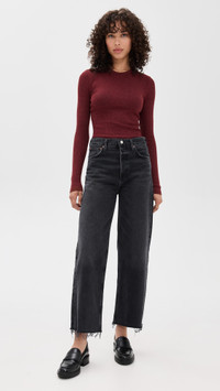 - Fabric: Lightweight, super-stretch ribbed knit - Crew neck - Long sleeves - Shell: 50% polyester/32% cotton/18% rayon - Wash cold - Made in the USA of imported materials Style #AGOLE31174 Size & Fit Model measurements: Size S: Alexa (5'9") usually wears size XS-S Measurements from size S Length: 23.5in / 60.0cm, from shoulder