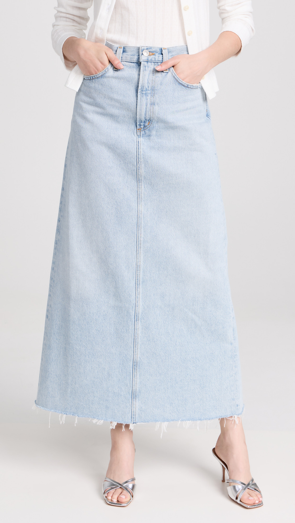 - Fabric: Heavyweight, low-stretch denim - Fading and whiskering - Slit at back and raw hem - Button closure and zip fly - 5-pocket styling - Shell: 100% cotton - Wash cold - Made in the USA of imported materials Style #AGOLE30830 Size & Fit Model measurements: - Size 24: Niamh (5'9") usually wears size 24-25 - Size 31: Molly (5'9.5") usually wears size 30-31 Measurements from size 24 Length: 38.25in / 97.0cm, from center back