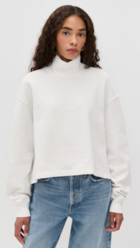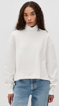 - Fabric: Mid-weight stretch fleece - Split hem - Turtleneck - Long sleeves with dropped shoulders - Shell: 100% cotton - Wash cold - Made in the USA of imported materials Style #AGOLE31149 Size & Fit Model measurements: Size XS: Anisa (5'8.5") usually wears size XS Measurements from size XS Length: 20in / 51.0cm, from shoulder