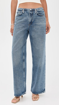- Fabric: Mid-weight, non-stretch denim - Fading and whiskering - Button closure and zip fly - 5-pocket styling - Shell: 100% cotton - Wash cold - Imported, Turkey Style #AGOLE31162 Size & Fit Intended for a low-rise, wide-leg cut. Features a baggy fit. Non-stretch denim will soften and give with wear. Shopbop’s expert stylist says: Runs large; please size down Customers say: Runs large; please size down. Model measurements: - Size 25: Rocio (5'11") usually wears size 25 - Size 25: Mia (5'9.5") usually wears size 24-25 Measurements from size 34 Rise: 12.25in / 31cm Inseam: 30.75in / 78cm Leg opening: 26in / 66cm