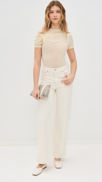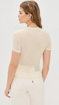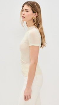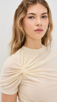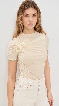 - Fabric: Lightweight jersey - Twist detail at front - Crew neck - Short sleeves - Shell: 94% lyocell/6% spandex - Hand wash - Made in the USA of imported materials Style #AGOLE31068