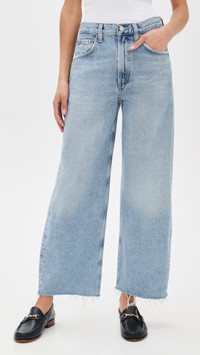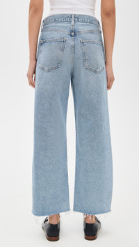 - Fabric: Mid-weight, non-stretch denim - Light distressing and frayed cuffs - Button closure and zip fly - 5-pocket styling - Shell: 100% cotton - Wash cold - Imported, Turkey Style #AGOLE31114 Size & Fit Intended for a mid-rise, wide-leg cut. Finished with a cropped inseam. Non-stretch denim will soften and give with wear. Shopbop’s expert stylist says: Runs large; designed for a loose fit. For a higher and closer fit, size down Model measurements: Size 25: Anisa (5'8.5") usually wears size 24-25 Measurements from size 25 Rise: 11in / 28cm Inseam: 27.25in / 69cm Leg opening: 19.75in / 50cm