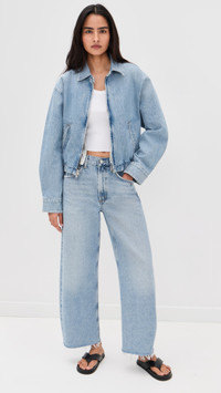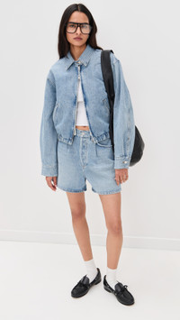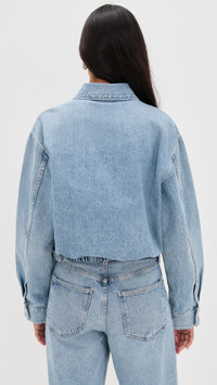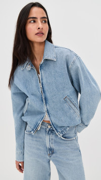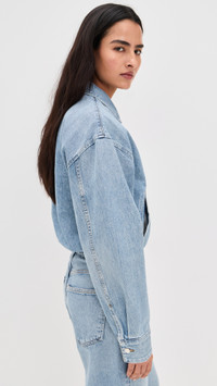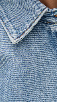 - Fabric: Mid-weight, non-stretch denim - Button closure at neckline - Collared neck - Two-way zip closure - Partial elastic waistband - Slant hip pockets - Shell: 100% cotton - Unlined - Wash cold - Made in the USA of imported materials - Long sleeves with button cuffs Style #AGOLE31128