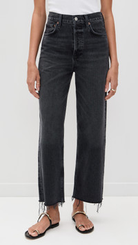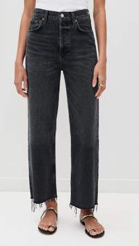 - Fabric: Mid-weight, non-stretch denim - Fading and whiskering - Frayed hem - Button fly - 5-pocket styling - Shell: 100% cotton - Wash cold - Imported, Turkey Style #AGOLE31156 Size & Fit Model measurements: Size 25: Drew (5'8") usually wears size 25-26 Measurements from size 25 Rise: 11.75in / 30cm Inseam: 27.5in / 70cm Leg opening: 18in / 46cm