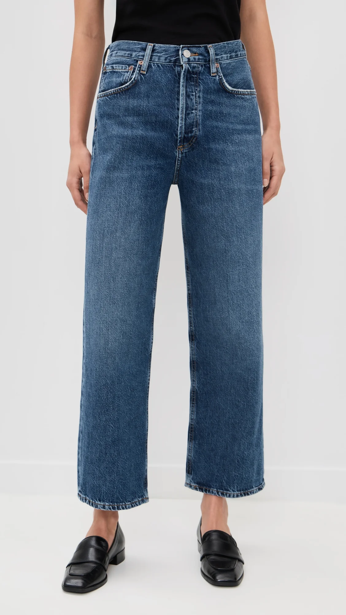 - Fabric: Mid-weight, non-stretch denim - Fading and whiskering - Ankle length - Button fly - 5-pocket styling - Shell: 100% cotton - Wash cold - Imported, Turkey - Cotton grown using regenerative farming, which uses a minimal or no-tillage approach and covers crops to better restore soil health Style #AGOLE30893 Size & Fit Designed with a high rise and cropped wide leg. Non-stretch denim will soften and give with wear. Shopbop’s expert stylist says: Runs true to size. Model measurements: - Size 26: Margaret (5'11") usually wears size 24-25 - Size 32: Natasha (5'9") usually wears size 31-32 Measurements from size 26 Rise: 11.75in / 30cm Inseam: 27.5in / 70cm Leg opening: 19in / 48cm