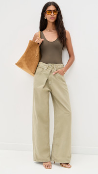 - Fabric: Mid-weight, non-stretch denim - Composed of 100% regenerative cotton - Fold at closure - Button closure and zip fly - Hook-and-eye closure at waist - 5-pocket styling - Shell: 100% cotton - Wash cold - Imported, Turkey Style #AGOLE31225 Size & Fit Model measurements: Size 26: Rocio (5'11") usually wears size 25 Measurements from size 26 Rise: 13.5in / 34cm Inseam: 30.25in / 77cm Leg opening: 22in / 56cm