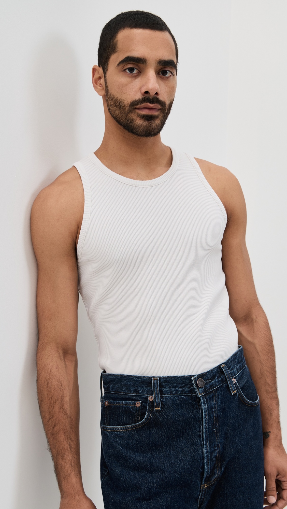 - Fabric: Lightweight ribbed knit - Crew neck - Shell: 49% cotton/49% lyocell/2% spandex - Wash cold - Made in the USA of imported materials - Sleeveless Style #AGOLE31035 Size & Fit Model measurements: Size M: Zach (6'0") usually wears size M Measurements from size M Length: 24.5in / 62cm Chest: 30in / 76cm