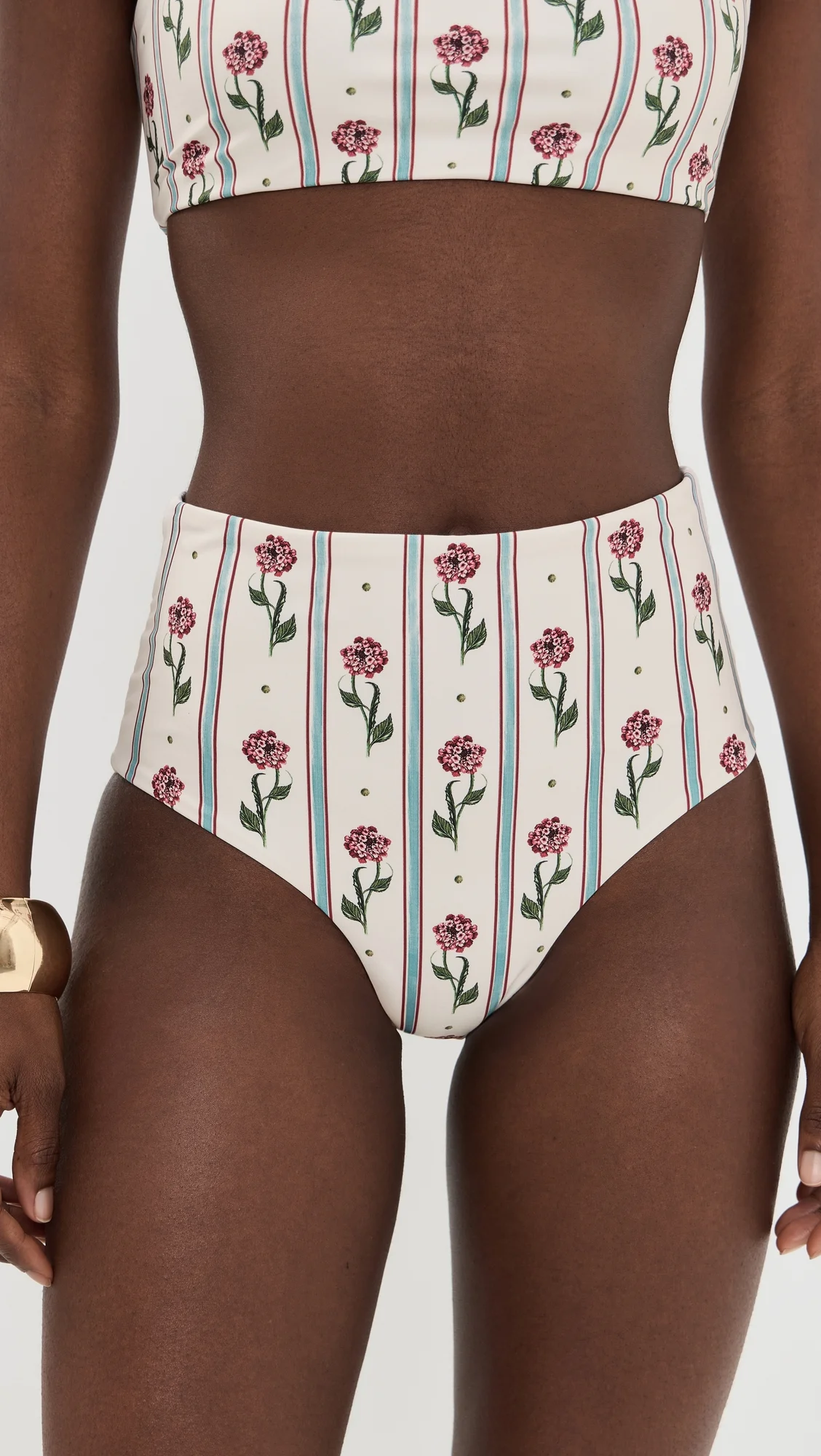 - Composed of 81% recycled polyester - Floral and stripe print - High waisted - Cheeky coverage - Covered elastic waistband - Shell: 81% polyester/19% elastane - Lined - Lining: 78% polyamide/22% elastane - Hand wash - Imported, Colombia Style #AGUAA30346 Size & Fit Model measurements: Size S: Cher (5'11") usually wears size S