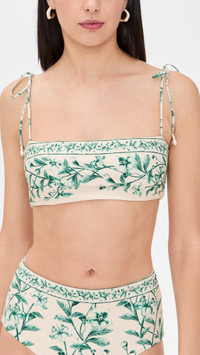 - Floral print and imitation pearls - Adjustable straps - Shell: 81% polyester/19% elastane - Lined - Lining: 78% polyamide/22% elastane - Wash cold - Imported, Colombia - Bottoms sold separately Style #AGUAA30326 Size & Fit Model measurements: Size S: Sam (5'9") usually wears size XS