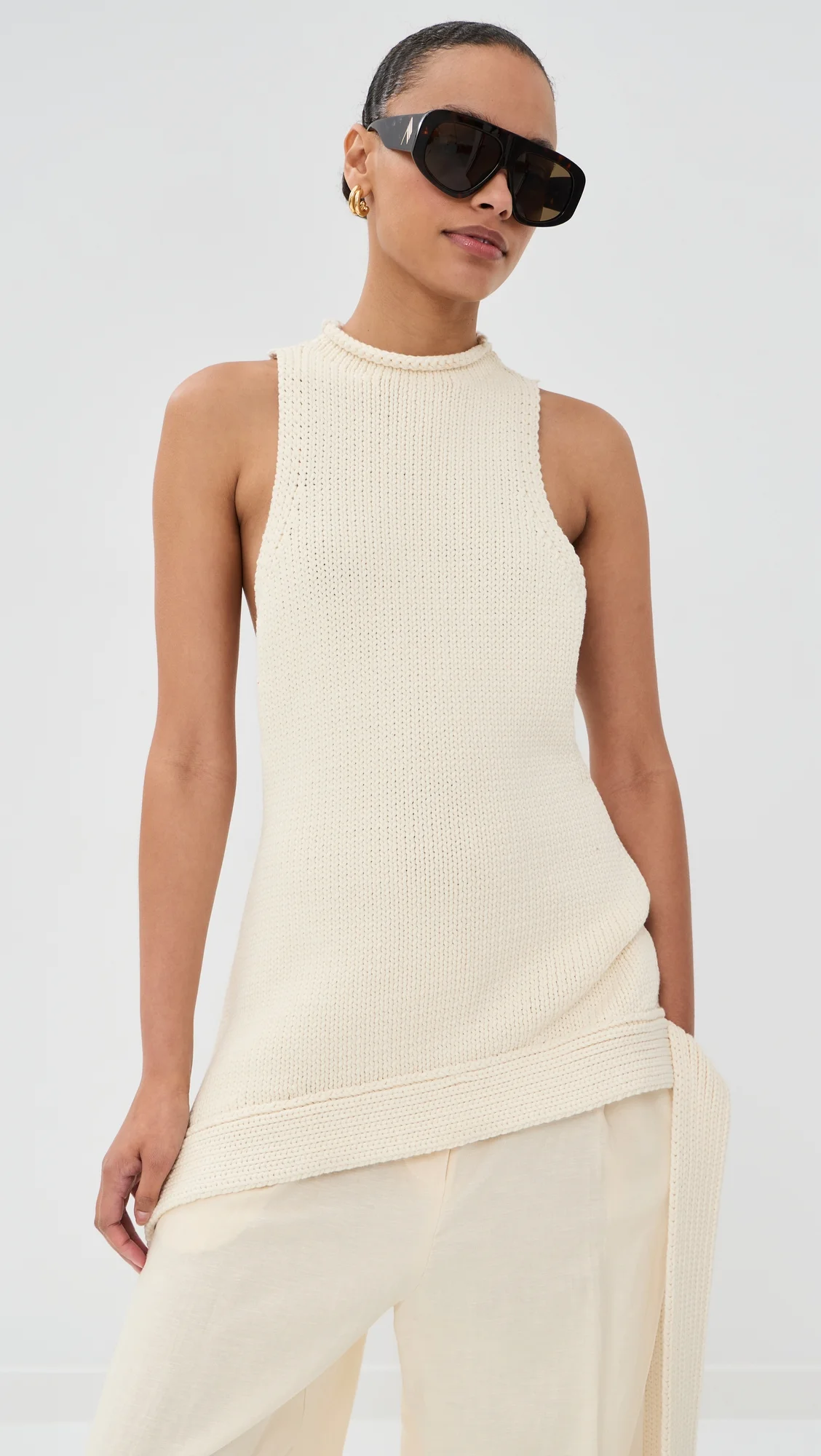 - Fabric: Mid-weight stretch knit - Decorative ties at sides - Open back - Crew neck - Sleeveless - Shell: 76% cotton/24% nylon - Unlined - Hand wash or dry clean - Made in Italy Style #ACAMP30001 Size & Fit Model measurements: Size XS: Alexis (5'8") usually wears size XS-S Measurements from size S Length: 26in / 66.0cm, from shoulder