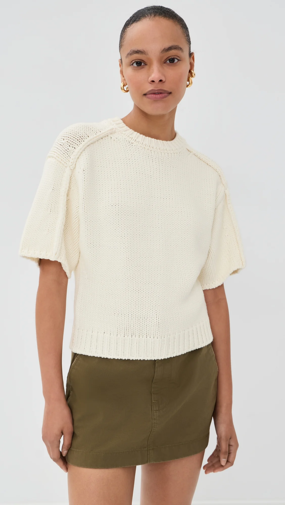 - Fabric: Heavyweight stretch knit - Exposed seaming - Dropped shoulders - Ribbed trim - Crew neck - Elbow-length sleeves - Shell: 45% viscose/40% nylon/15% merino wool - Unlined - Hand wash - Made in Italy Style #ACAMP30002 Size & Fit Model measurements: Size XS: Alexis (5'8") usually wears size XS-S Measurements from size XS Length: 20in / 51.0cm, from shoulder