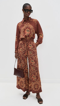 - Fabric: Lightweight, non-stretch charmeuse - Paisley pattern - Covered elastic waist with drawstring - On-seam side pockets - Shell: 100% silk - Dry clean - Imported, China Style #ALEMA30332 Size & Fit Customers say: Runs large; please size down. Model measurements: Size 4: Cher (5'11") usually wears size 4 Measurements from size 4 Rise: 13.5in / 34cm Inseam: 27.5in / 70cm Leg opening: 28.25in / 72cm