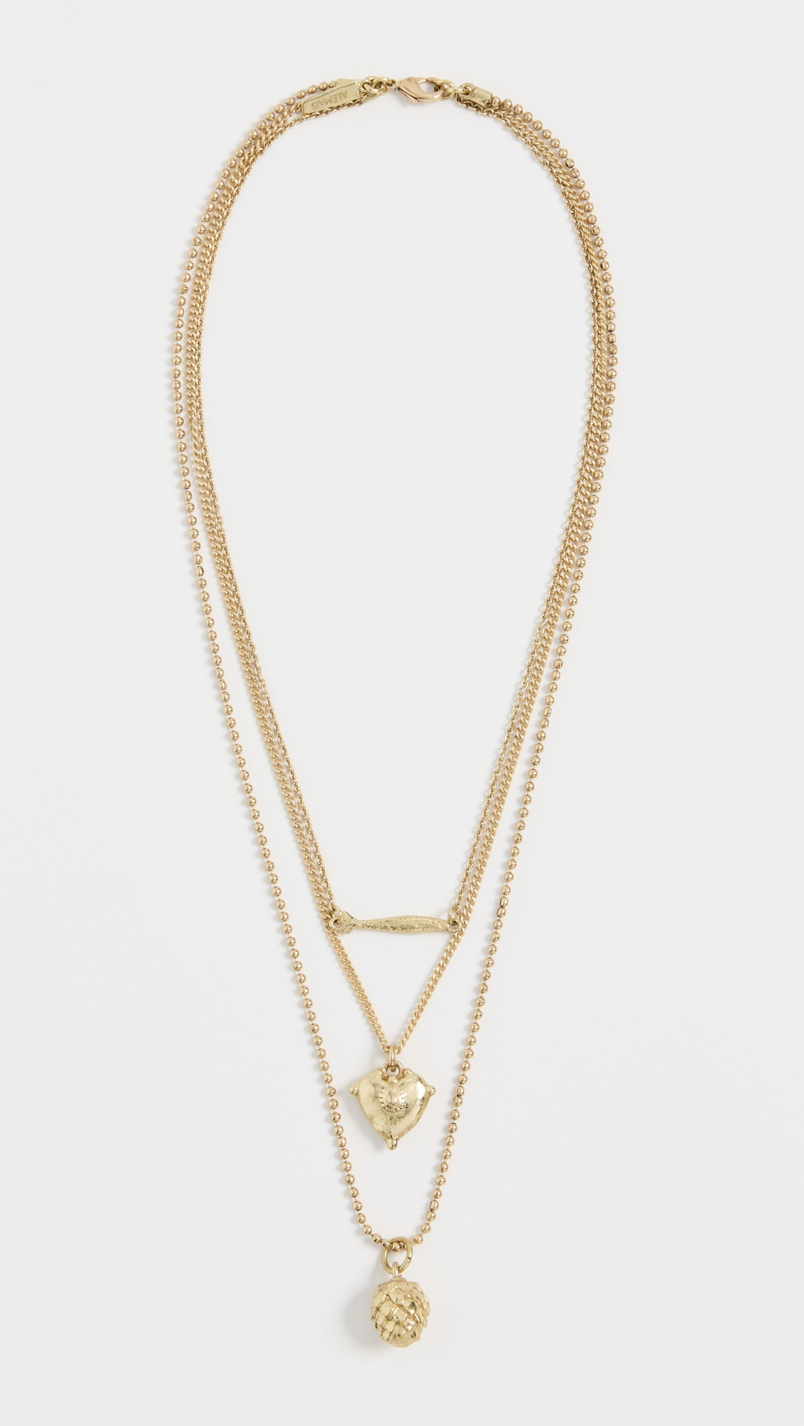 - Fish, heart, and artichoke charms - Layered design - Brass - Lobster claw clasp - Imported, Indonesia Style #ALEMA30326