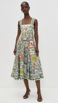 - Fabric: Lightweight stretch poplin - Rickrack trim - Midi length - Square neckline - Sleeveless - Hook-and-eye and hidden zip at back - On-seam side pockets - Shell: 100% cotton - Lined - Hand wash or dry clean - Imported, Vietnam Style #ALEMA30339