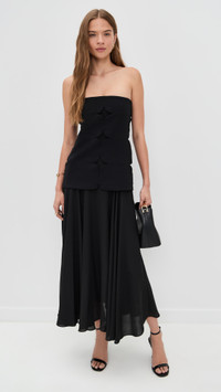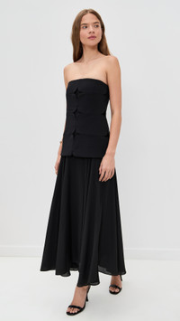 - Fabric: Mid-weight, non-stretch crepe - Paneled and cutout bodice overlay - Optional straps - Dropped waist - Maxi length - Square neckline - Sleeveless - Hook-and-eye and hidden zip at back - Shell: 92% polyester/8% polyurethane - Lined - Lining: 100% polyester - Dry clean - Imported, China Style #ALXIS20924 Size & Fit Model measurements: Size XS: Margaret (5'11") usually wears size XS Measurements from size XS Length: 53.25in / 135.0cm, from shoulder to front hem