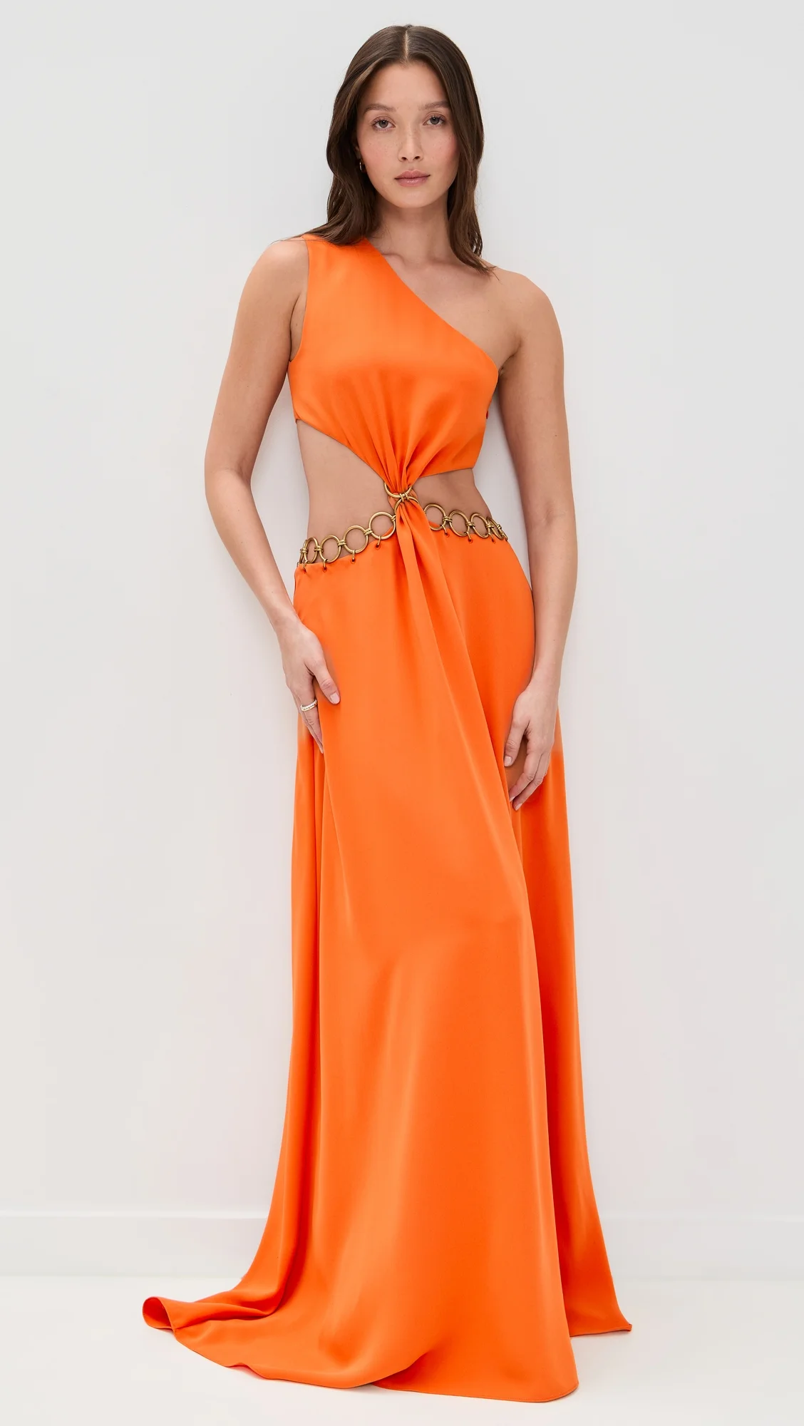 - Fabric: Mid-weight, non-stretch crepe - Gold-tone hardware - Maxi length - One-shoulder neckline - Sleeveless - Hook-and-eye and hidden zip at side - Shell: 100% polyester - Lined - Lining: 95% polyester/5% elastane - Dry clean - Imported, China Style #ALXIS20916