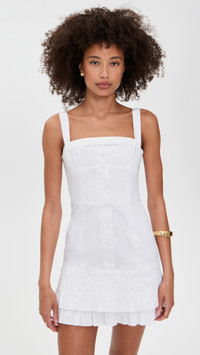 - Fabric: Lightweight stretch weave - Decorative buttons - Ruffled skirt - Mini length - Tank style - Sleeveless - Hidden zip at side - Shell: 97% cotton/3% elastane - Lining: 54% polyester/46% rayon - Dry clean - Imported, China Style #ALXIS20887 Size & Fit Customers say: Runs small; please size up. Model measurements: Size XS: Drew (5'8") usually wears size XS-S Measurements from size XS Length: 30.75in / 78.0cm, from shoulder