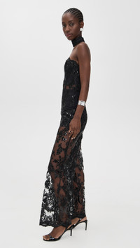 - Fabric: Mid-weight, non-stretch lace - Allover sequined embellishments - Optional neck scarf - Boned interior bodice - Scalloped edges - Strapless - Sleeveless - Hook-and-eye and hidden zip at back - Sheer - Shell: 100% polyester - Partially lined - Lining: 95% polyester/5% elastane - Dry clean - Imported, China Style #ALICE47121 Size & Fit Model measurements: Size 0: Cher (5'11") usually wears size 0 Measurements from size 0 Inseam: 31.5in / 80cm Leg opening: 23.5in / 60cm