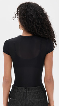 - Fabric: Lightweight, super-stretch slinky jersey - Crew neck - Short sleeves - Thong back and snap gusset - Semi-sheer - Shell: 85% nylon/15% elastane - Dry clean - Imported, China Style #ALICE47250 Size & Fit Model measurements: Size XS: Eyshila (5'10") usually wears size XS