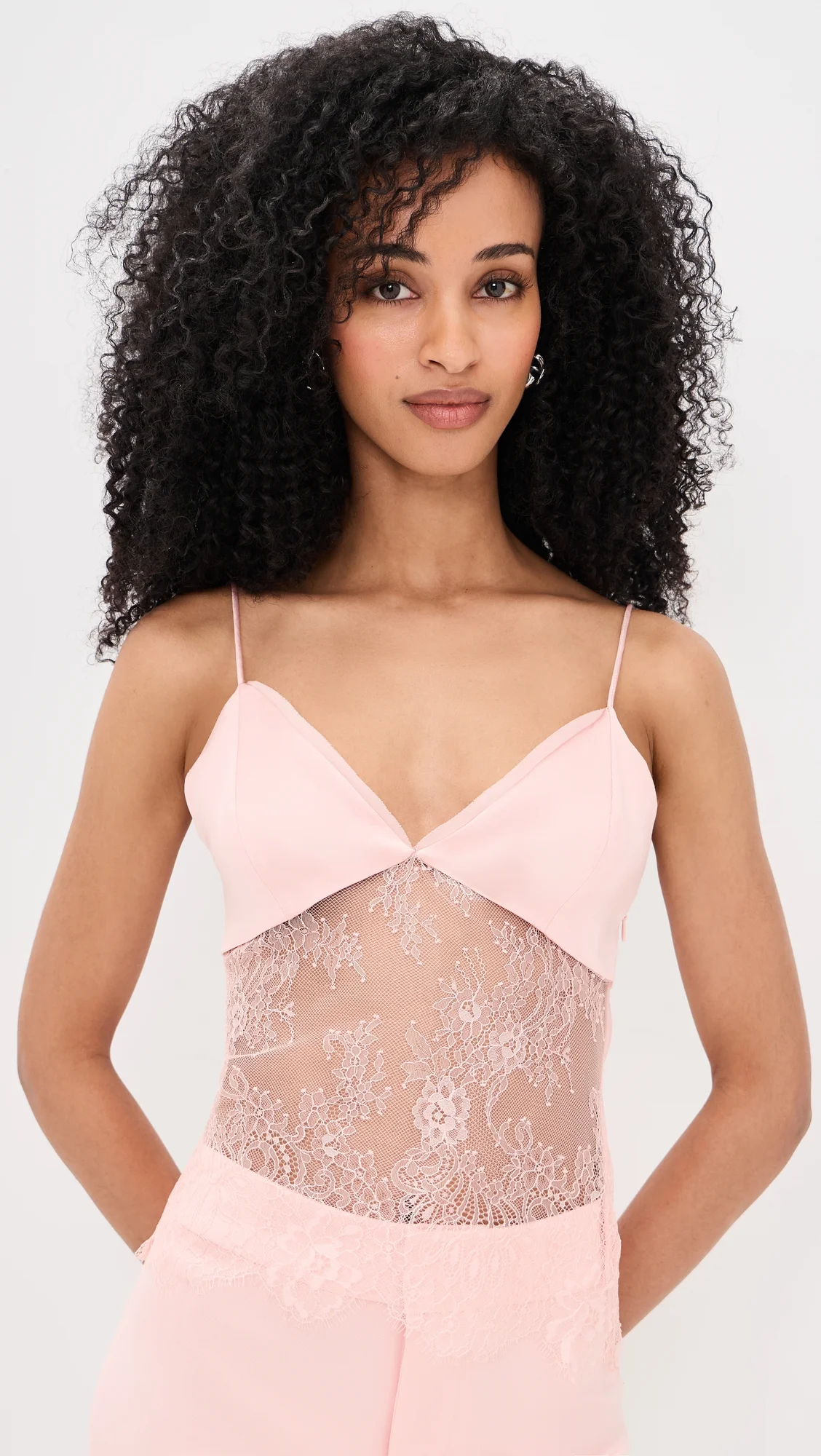 - Fabric: Lightweight, low-stretch satin - Contrast lace trim - V neck - Sleeveless - Zip at side - Semi-sheer - Shell: 100% nylon - Trim: 98% viscose/2% elastane - Partially lined - Lining: 100% polyester - Dry clean - Imported, Vietnam Style #ALICE47388 Size & Fit Model measurements: Size 0: Mical (5'10") usually wears size 0 Measurements from size 0 Length: 19.75in / 50.0cm, from shoulder