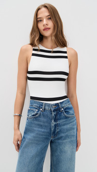 - Fabric: Lightweight, super-stretch jersey - Stripe print - Crew neck - Sleeveless - Thong back and snap gusset - Zip at front - Shell: 97% viscose/3% elastane - Lined - Lining: 85% nylon/15% elastane - Dry clean - Imported, China Style #ALICE47062