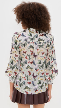- Fabric: Lightweight, non-stretch flocked chiffon - Butterfly pattern - Smocked elastic cuffs - V neck - Long puff sleeves - Semi-sheer - Shell: 63% viscose/37% silk - Trim: 100% polyester - Dry clean - Imported, China Style #ALICE47114 Size & Fit Model measurements: Size XS: Alexis (5'8") usually wears size XS-S Measurements from size XS Length: 25.5in / 65.0cm, from shoulder