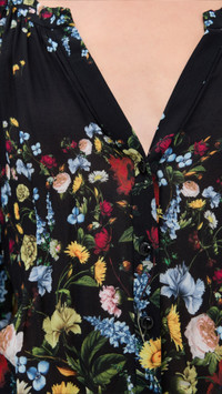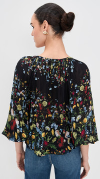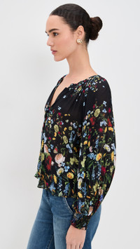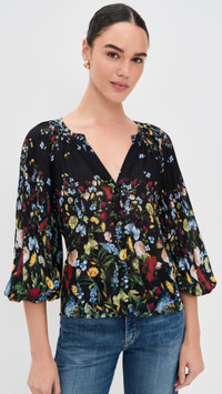 - Fabric: Lightweight, non-stretch voile weave - Floral print - Smocked elastic cuffs - V neck - Long puff sleeves - Button placket - Semi-sheer - Shell: 100% viscose - Dry clean - Imported, Vietnam Style #ALICE47269