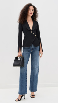 - Fabric: Mid-weight, non-stretch wool sateen - Shawl lapel - Padded shoulders and split cuffs - Asymmetrical gold-tone buttons at front - Collared neck - Long sleeves - Shell: 98% wool/2% polyurethane - Lined - Lining: 100% polyester - Dry clean - Imported, Vietnam Style #ALICE47255 Size & Fit Model measurements: Size 0: Mily (5'11") usually wears size 0-2 Measurements from size 0 Length: 23.25in / 59.0cm, from shoulder