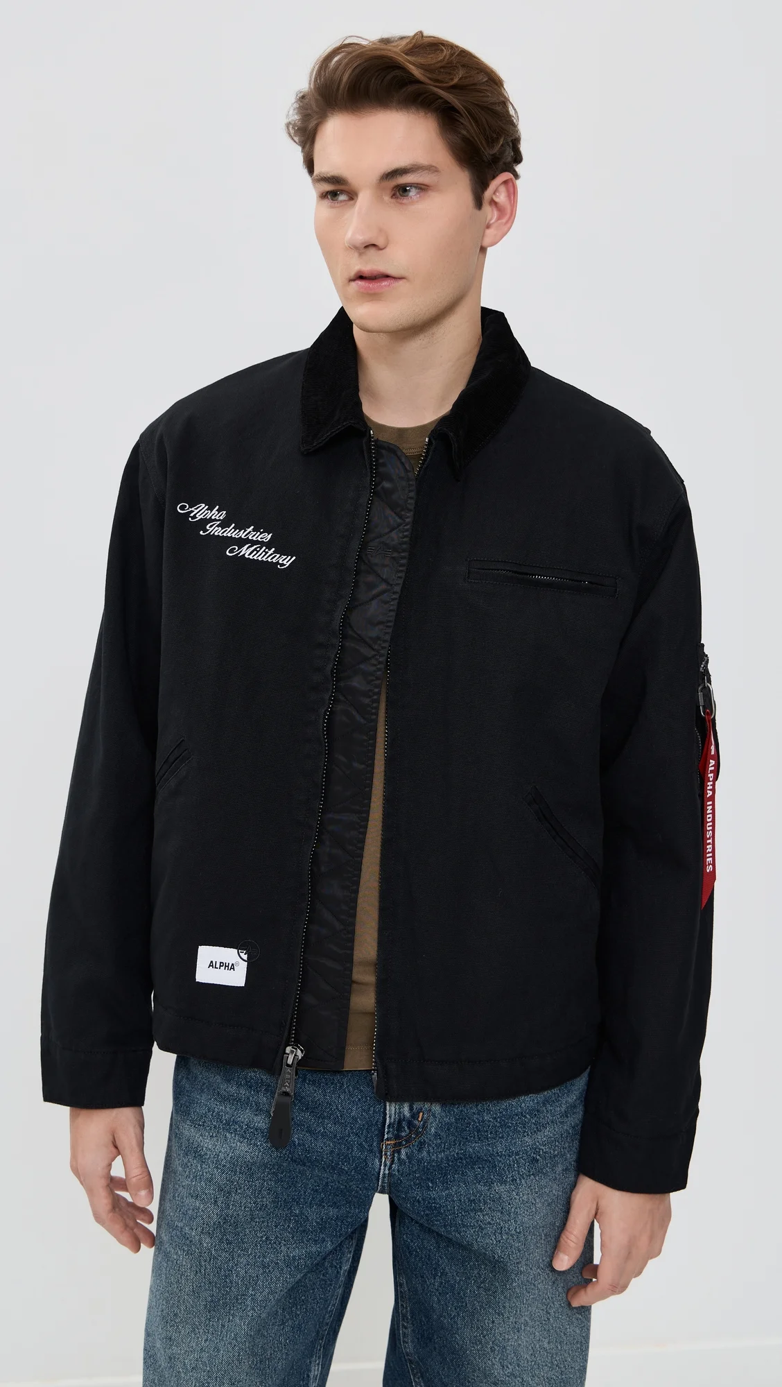 - Fabric: Heavyweight, non-stretch canvas - Corduroy trim and quilted lining - Collared neckline - Long sleeves - Two-way zip closure - Welt front pockets - Shell: 100% cotton - Lined - Lining: 100% nylon - Fill: 100% polyester - Dry clean - Imported, China Style #AINDU30249