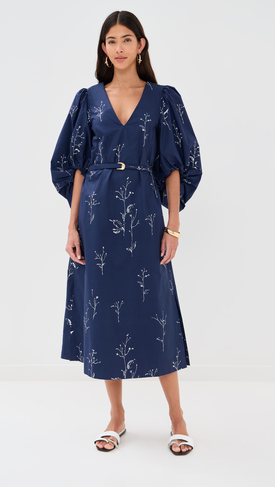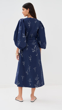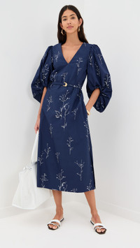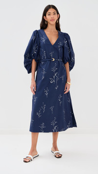 - Fabric: Mid-weight, non-stretch poplin - Floral print - Midi length - V neck - Long puff sleeves - Self-belt at waist - Hidden zip at side - On-seam side pockets - Shell: 100% cotton - Lined - Lining: 100% polyester - Dry clean - Made in Italy Style #ALTUZ30250