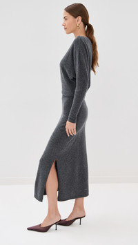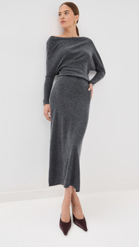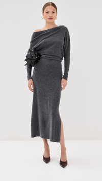 - Fabric: Lightweight stretch knit - Ribbed edges - Maxi length - Off-shoulder neckline - Long sleeves - Pullover design, no closure - Shell: 100% cashmere - Unlined - Hand wash or dry clean - Imported, China Style #ALTUZ30261 Size & Fit Model measurements: Size XS: Margaret (5'11") usually wears size XS Measurements from size XS Length: 59in / 150.0cm, from shoulder